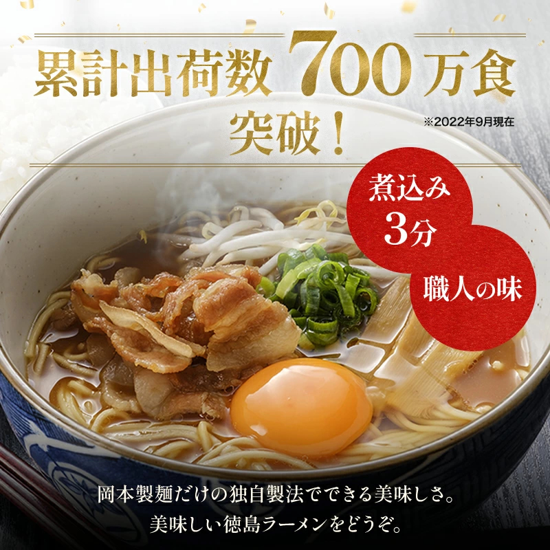 累計販売数160万袋を突破したご当地らーめんの徳島らーめんです。麺は、棒状のストレート細麺です。